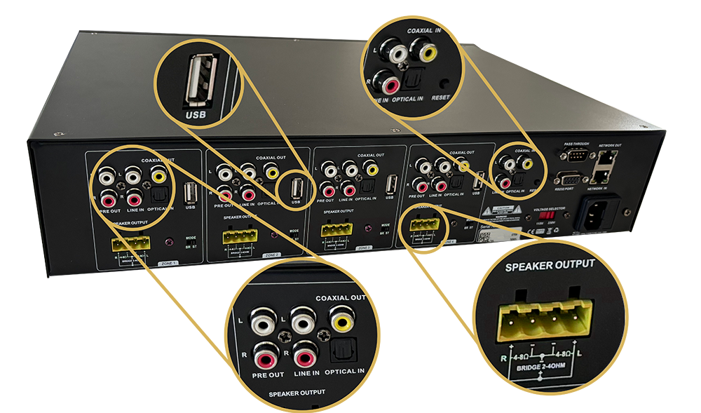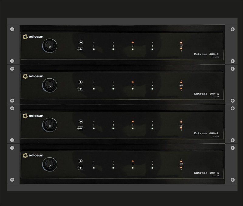 Wykonaj profesjonalną instalację audio w dowolnej ilości stref w szafie rack. Extreme 400-R mieści się w standardzie RACK 2U i jest wyposażony w specjalne uchwyty pozwalające na tego typu montaż.